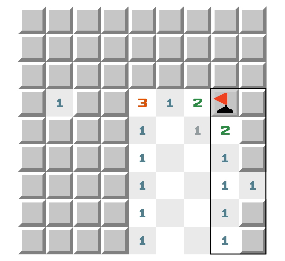 我们进一步把写成为的形式:其中m为雷层,n为数层。比如:代表非雷且定数为0的块(九格全非雷) ,代表非雷且定数为3的块,代表非雷且定数为8的块等等。当未定块是雷的时候,游戏中一般不会显示出来定数层,但不代表不存在,我们进一步抽象,比如用来表示雷且数层为3的块(周围有三个雷),表示雷且定数为8的块(九格全雷)