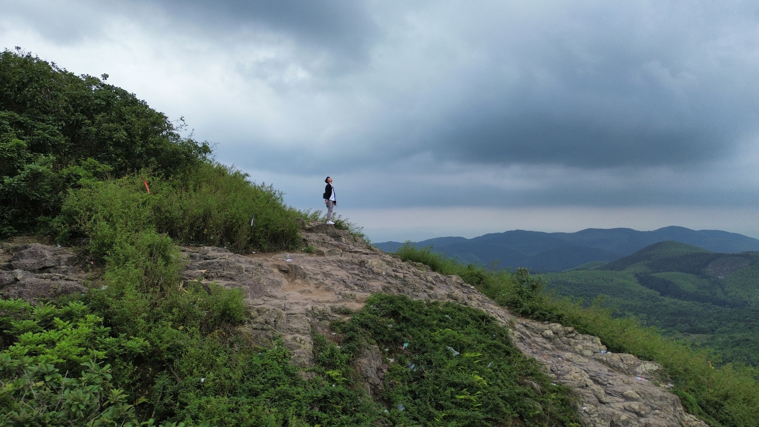 心里没底,不知道离山顶/主路还有多远,便让无人机飞起来探路。无人机飞了60m后,发现我周围还全都是树,心里凉了半截。