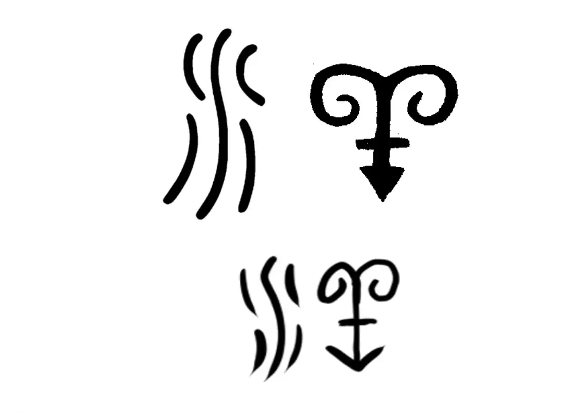 - 中文:“洋”甲骨文(始于2015在水杯上的标记)
