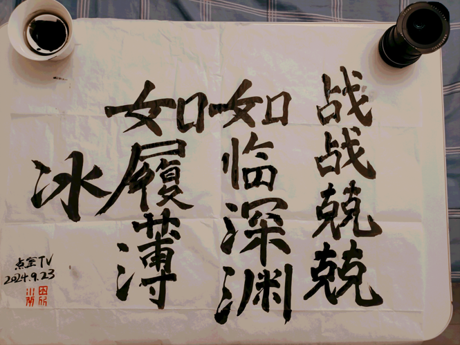 尽管如此,也还是要写个大字,“这是计划的一部分”。选了诗经里的一句——『战战兢兢,如临深渊,如履薄冰。』(这也是大一plan002 拯救薄冰者的来源)。写这句话的直接原因是上周制定的工艺文件有疏漏,今天在现场出现问题了,虽然不一定完全是我的责任,但有这疏漏分明属于无能之错,没有可以辩解的余地。日后利用清单革命里的方法,好好完善一个『自我审查』方法,不论是写文件,还是写博客,还是做什么其他的事情,在完全结束前,必须要好好审查一番。