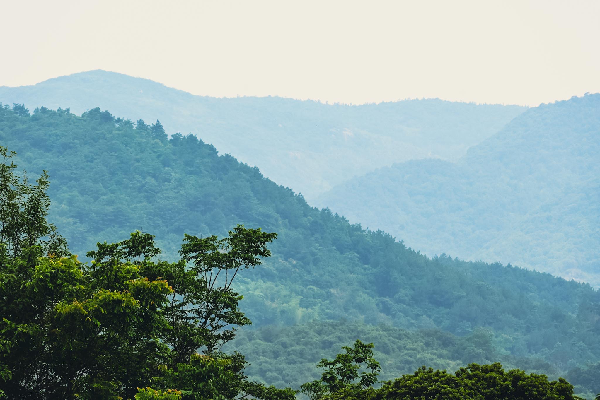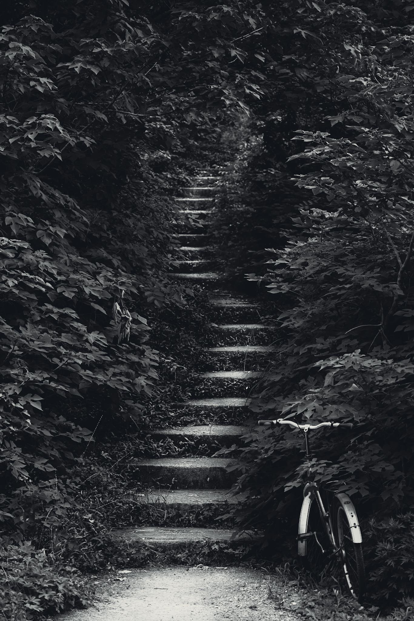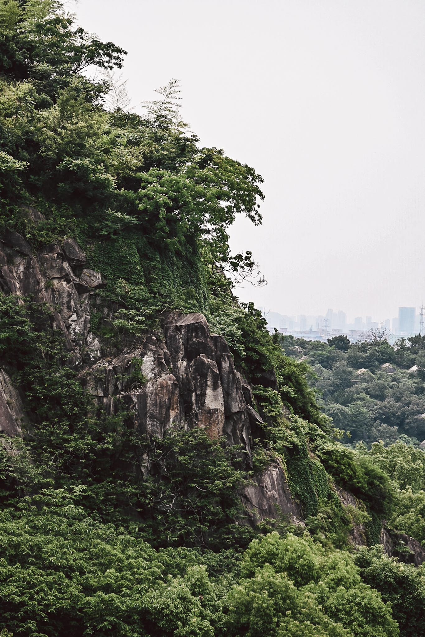 《登山小径》2025.5.25 慈溪,王家㻖南路。这是一条鲜为人知的小路,水泥板砌成的台阶直通到小山顶,路两旁皆是峭壁。拾阶而上,可以抵达上林湖西侧的杨梅园里。此时小满时节,杨梅正在盛果期,即将成熟(忍不住尝了个,妈的,真是嘎嘎酸),不时有果园的农人顺着小路上去果园里除草施肥。路上询问一个老农,他说这几座山种的全是杨梅,我看着满山的杨梅,不禁想象杨梅成熟时节,农人扛着杨梅下山的情形。