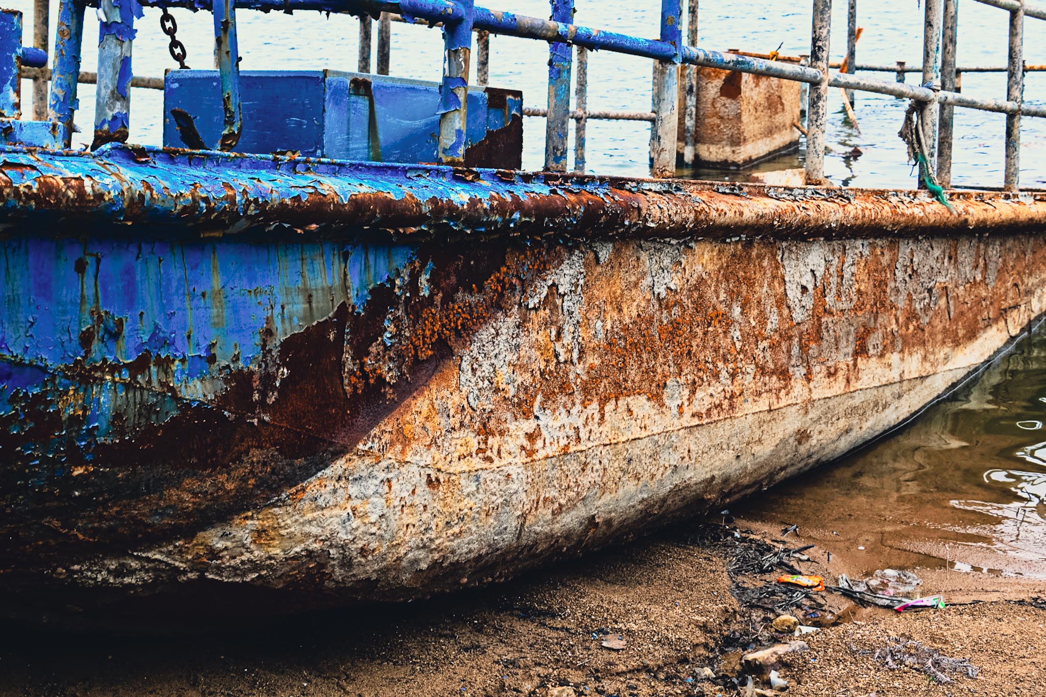 | 渔网 | 搁浅的船近景 | 生锈的铁丝 |