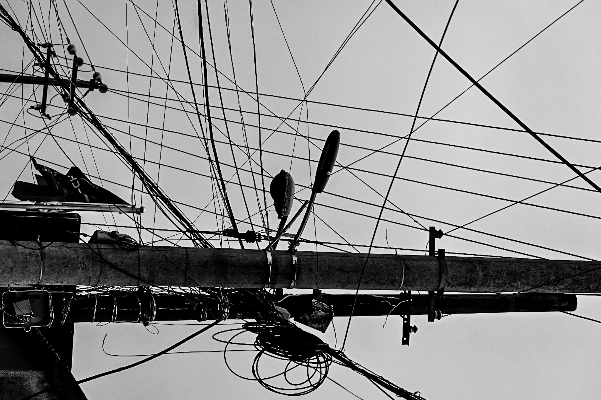 尽管自然界中并不存在线条,但我们周围有许多物体,它们的宽 度非常小,以致在照片上完全可以把他们看作线条,比如电话线、 电线、电视天线、树枝以及植物的纤细部分(特别是芦苇和高大 的禾本科植物)、晒衣绳、船缆以及桥上的铁索。
