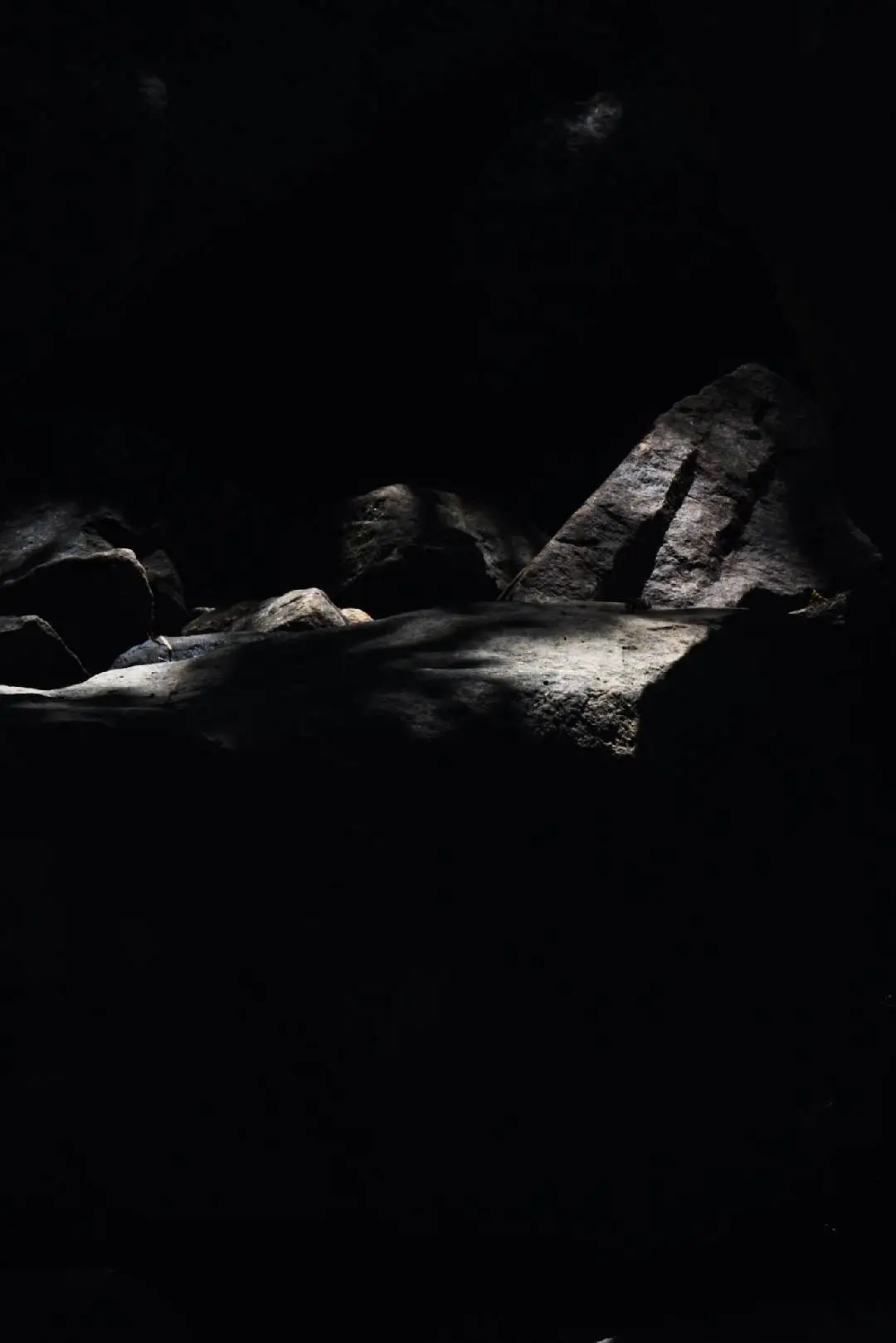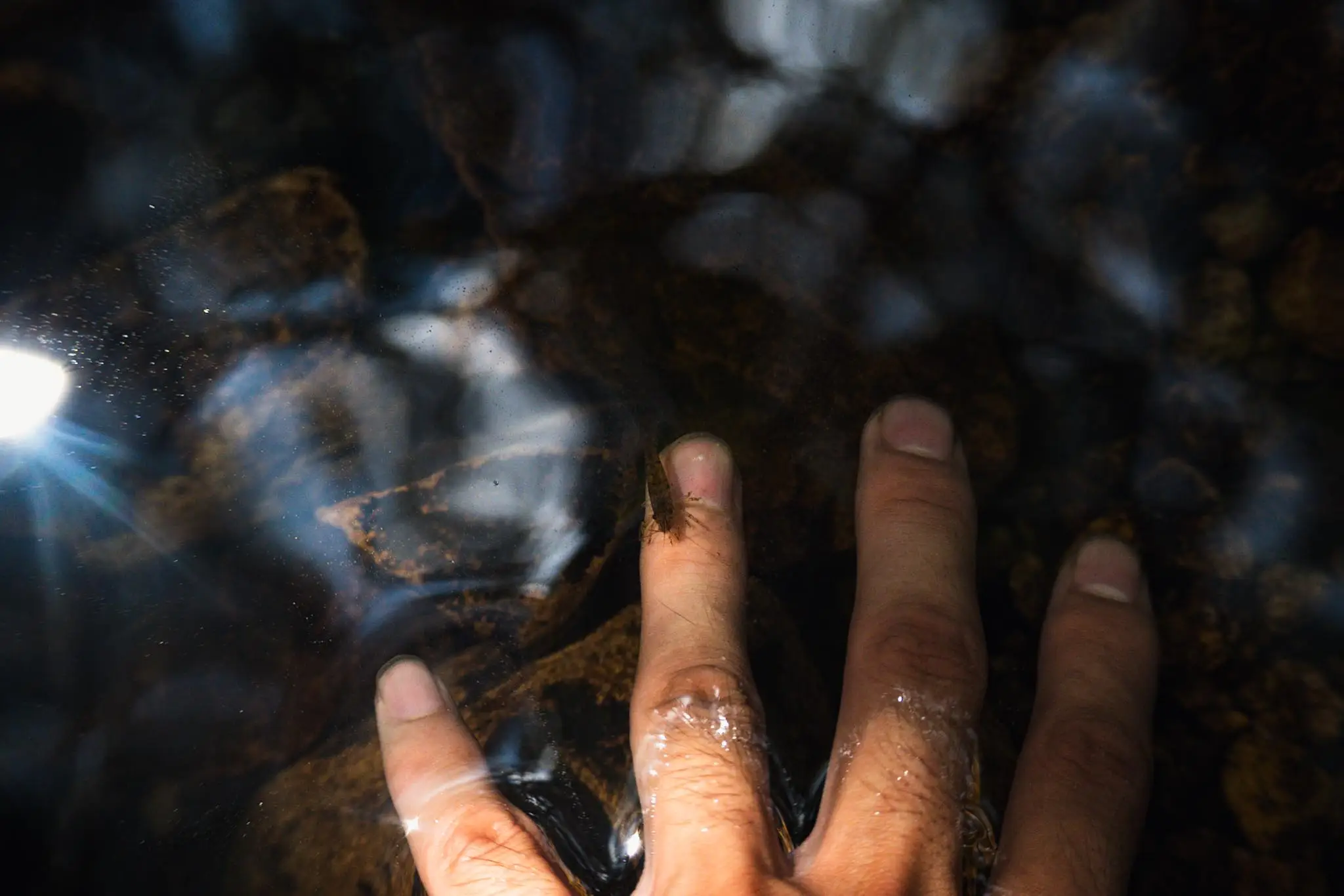下小潭,见虎斑小鱼、河虾三五只游荡溪石间,上有水黾。日光下澈,水黾之影投射水底,如微型黑洞;溪流击石,波晕散漫。时鱼、黾之动,虾、影之慢,杂糅一处,动静相宜,可爱有趣,甚觉快哉。