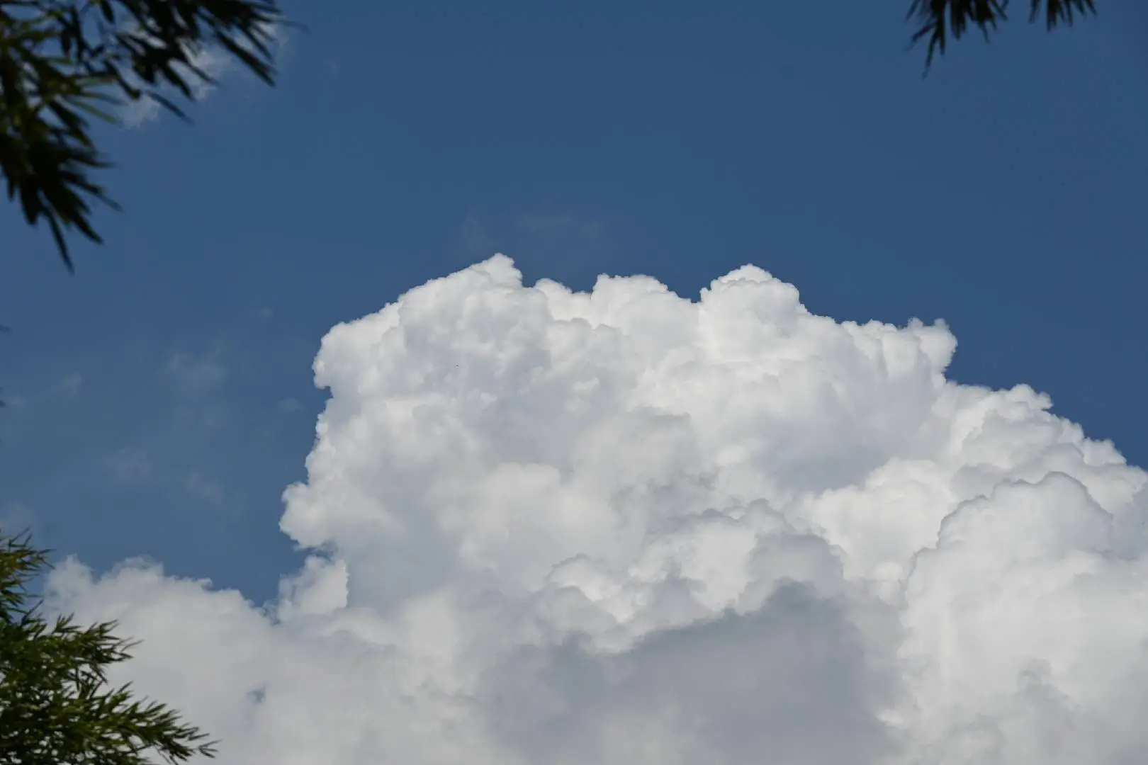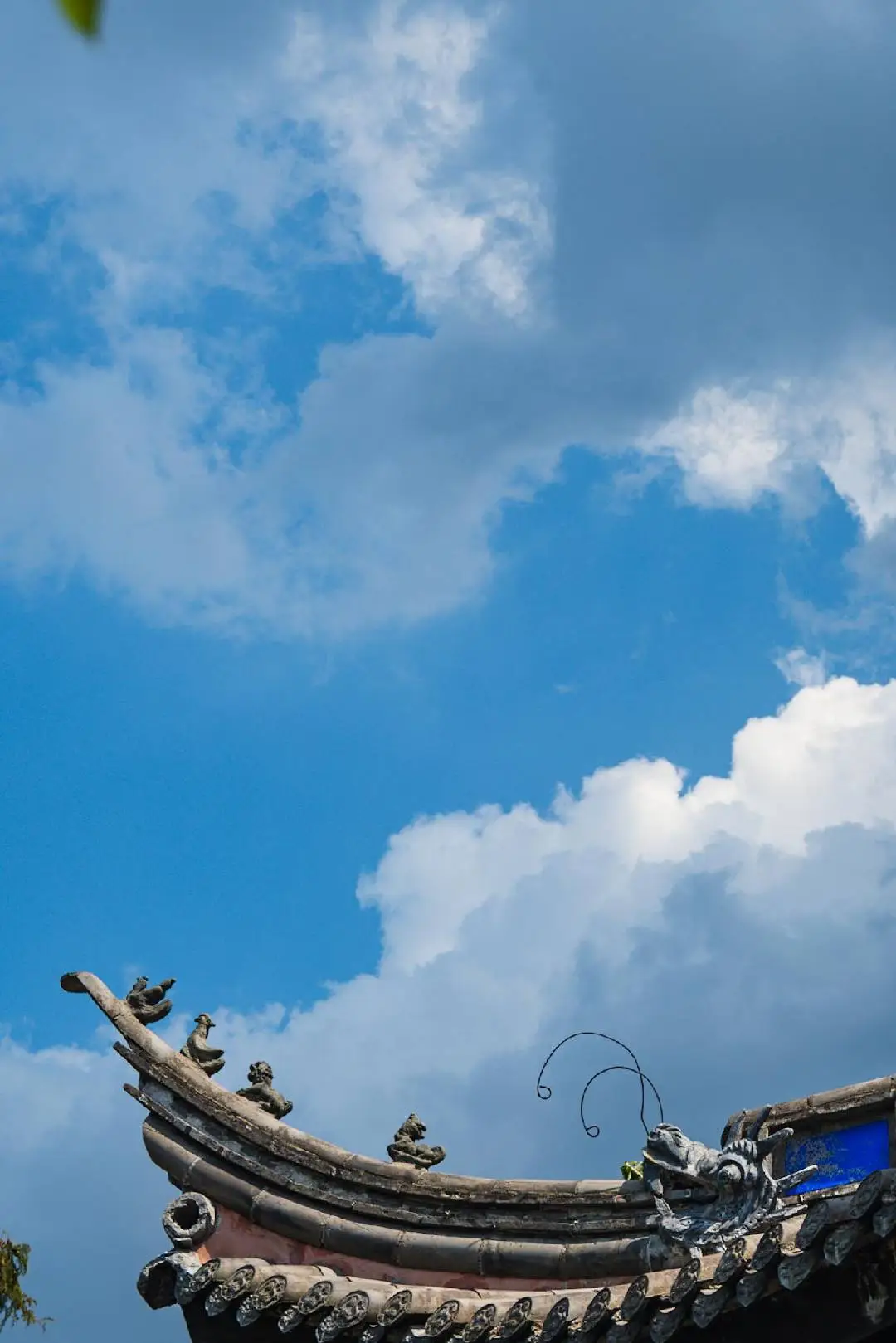 复登高,稍行百十阶,已觉酷热非常,汗如雨下,上衣几乎湿透。强行至山顶空石处,解衣赤背,晒衣石上。于石荫处歇息,瞭远山,观C城,看积云。归寺中拍照,无非飞檐走壁,古树老僧,川蜀游人而已,略知。
