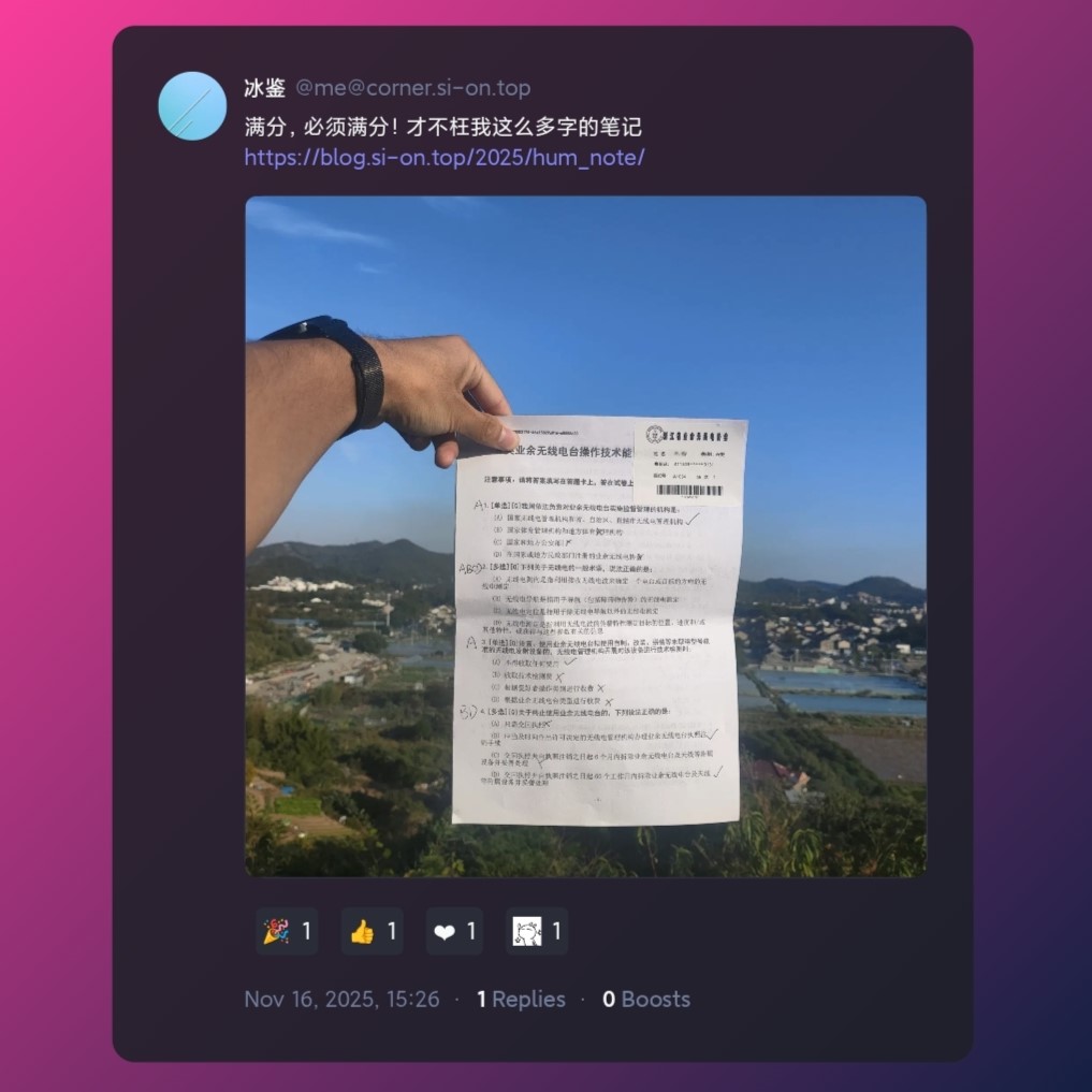 每一次呼叫都期待着回应。无线电,其趣味性远不同于摄影、篆刻、阅读之类,后者偏向内在,可独乐可众乐,前者则非众乐不可。它作为一种交流的手段,天生存在着交流的特点。如果玩下去,就意味着不断地与其他人进行交流,不管你有怎样的设备、天线,自制的、网购的、开源的、打印的等等等等折腾地怎样花哨,一但按下PPT键/电键后,所有的信息依托着电磁波传出去。如果没有远方的人反馈这个信号,就意味着没有闭环,看不到结果,是很烦人的。交流是及其重要的一部分,这也是Ham社区比其他爱好者社区更活跃、持久的原因所在。